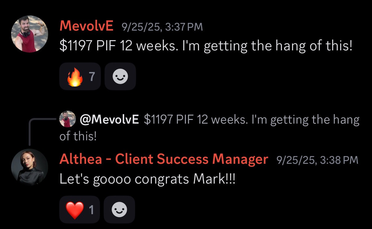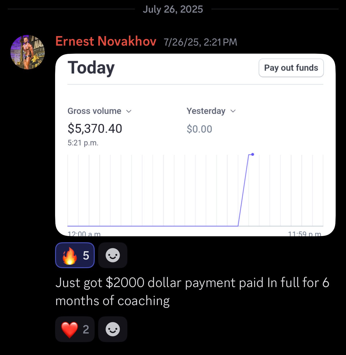 Surround yourself with winners. Inside our private Discord, you’ll connect with other motivated coaches, share wins, ask questions, and get direct feedback from Brandon, Dylan, and our mentor team. This isn’t a course, it’s a network of people building their dream lives right alongside you.